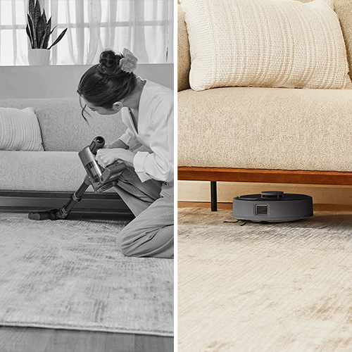 従来のロボット掃除機やスティック型掃除機では届かない場所までしっかり清掃します。