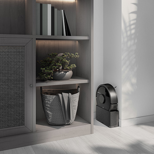 Roomba® Mini Slim 掃除機&床拭きロボット + SlimCharge™ 充電スタンドは狭い場所にもすっきり収まり、スペースを有効活用してお部屋のスペースを最大活用。