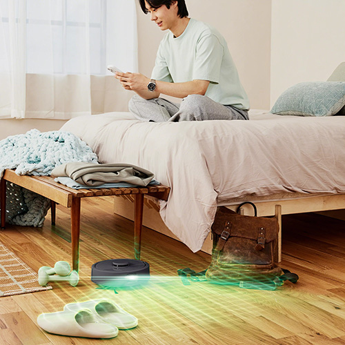 ClearView™ LiDARが10分未満*1でお部屋をマッピング。障害物を避けながら*2、水拭き中にはラグも自動で回避。