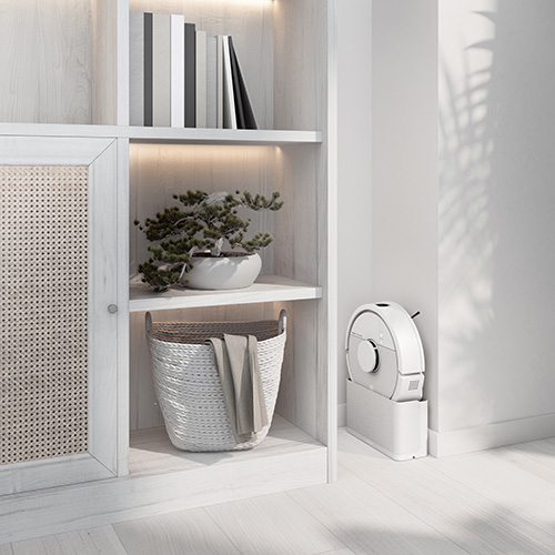 Roomba® Mini Slim 掃除機&床拭きロボット + SlimCharge™ 充電スタンドは狭い場所にもすっきり収まり、スペースを有効活用してお部屋のスペースを最大活用。
