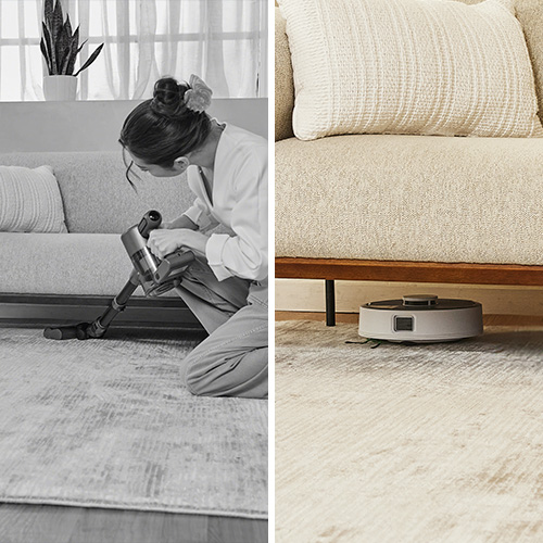 従来のロボット掃除機やスティック型掃除機では届かない場所までしっかり清掃します。