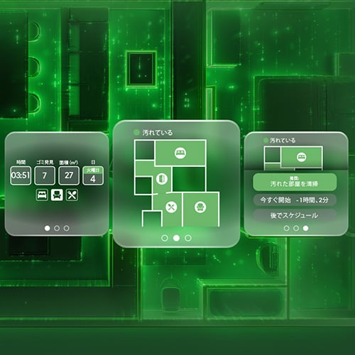 お持ちの音声アシスタント*6に、清掃の開始、または今後の清掃スケジュールの設定を指示すれば、家中の部屋からゴミやホコリが消えます。